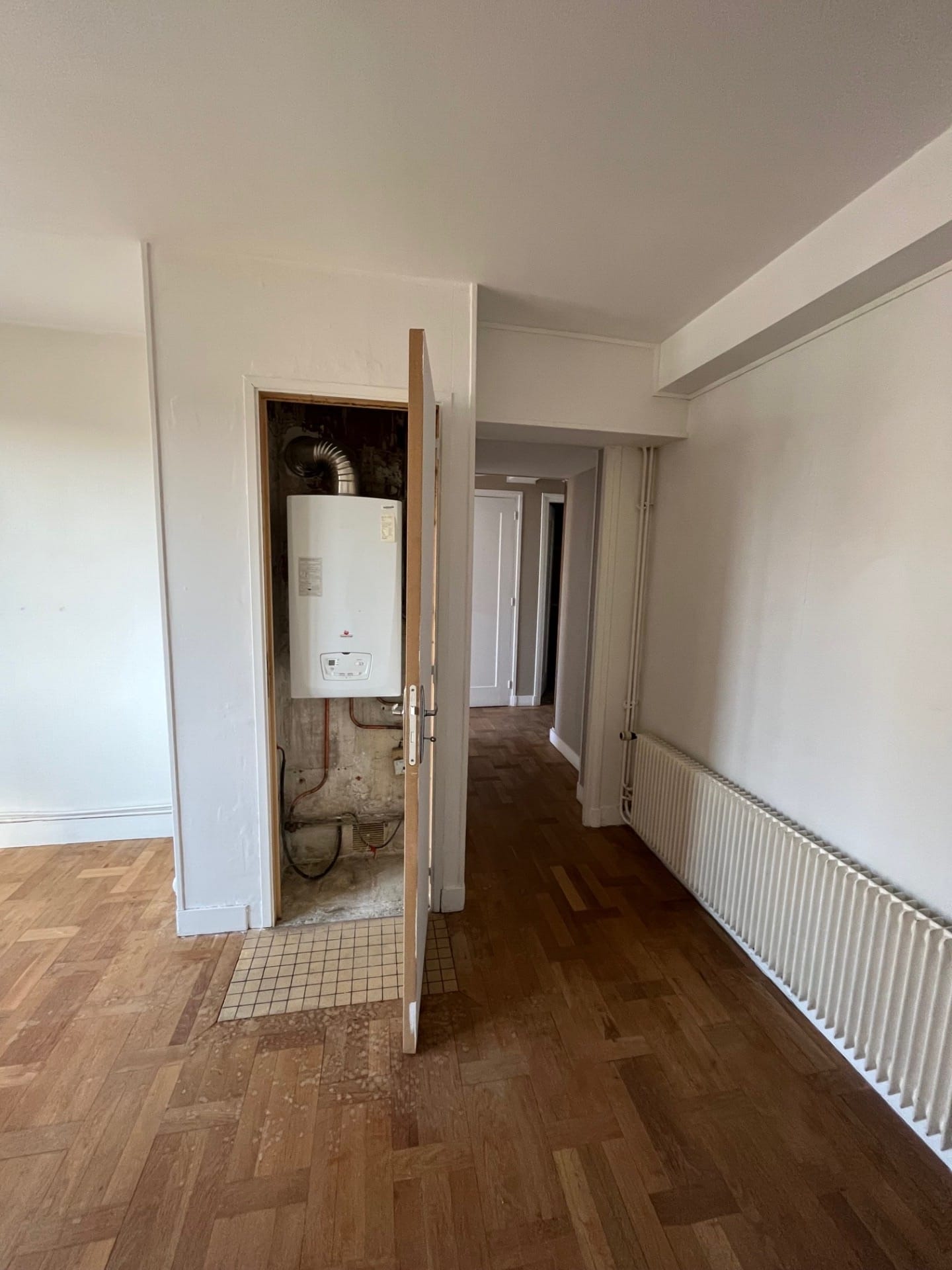 L’appartement ayant initialement une mauvaise performance énergétique (E), il a donc été nécessaire de prévoir une rénovation complète. L’appartement a été repensé de telle sorte qu’il puisse bénéficier d’une nouvelle chambre en transformant l’espace cellier en salle d’eau.
