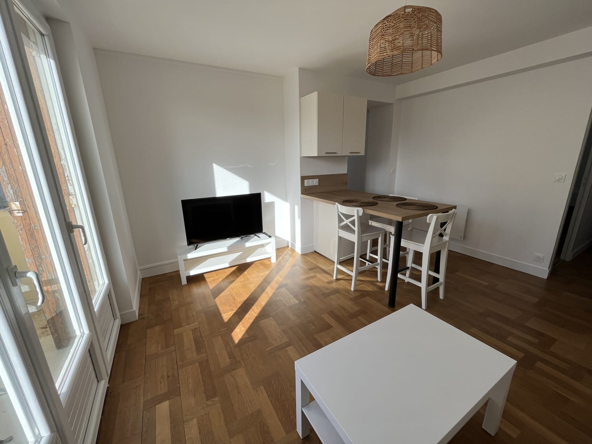 L’ensemble des réseaux électriques sont neufs, ainsi que les éléments sanitaires. L’installation d’une VMC, le changement du système de chauffage et la pose de nouvelles menuiseries donne lieu à un DPE bien plus performant (C). Le bien est équipé d’une nouvelle cuisine aménagée et équipée pour le confort des colocataires. Tous les murs ont été rafraichies et les murs périphériques isolés. Le ponçage et vitrification du parquet permet de moderniser l’ensemble.