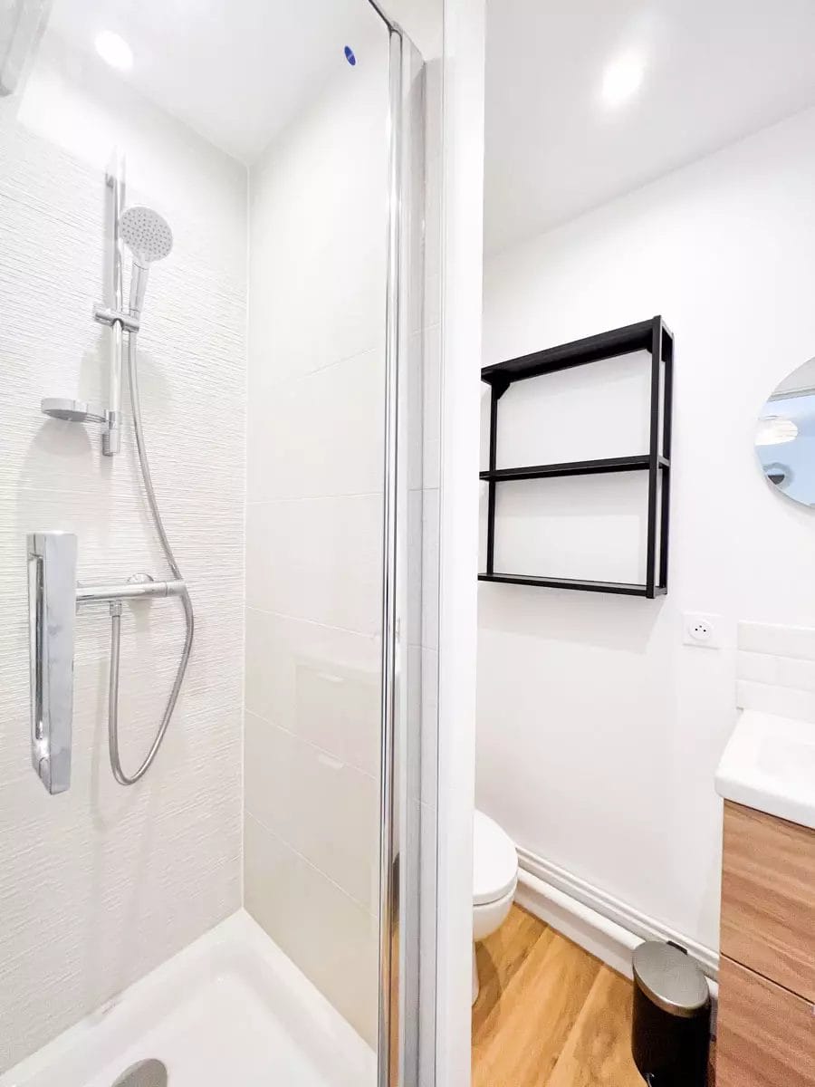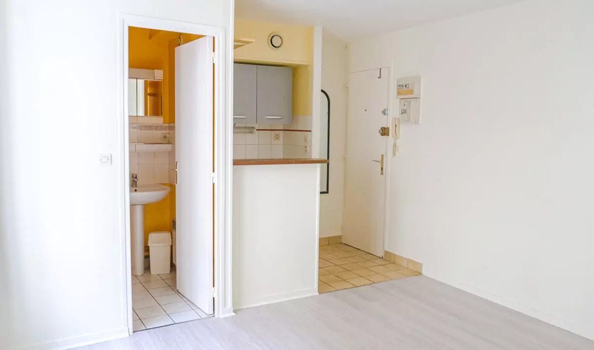 Le bien était vendu dans un état ne permettant pas de pratiquer un loyer élevé, il a donc été nécessaire de prévoir une rénovation complète. L’appartement a été repensé de telle sorte qu’il puisse bénéficier d’un coin nuit tout en gardant un petit salon ouvert sur la cuisine. L’ensemble des réseaux électriques sont neufs, ainsi que les éléments sanitaires. D’un point de vue fonctionnel, l’appartement est équipé d’une nouvelle cuisine et d’une salle d’eau neuve. Tous les murs ont été rafraichis et la pose du nouveau sol adapté à tout type de pièce (PVC) permet d’unifier l’ensemble. L’ajout d’une verrière dans la nouvelle cloison entre le coin nuit et le salon donne de la clarté à l’ensemble puisque l’appartement est doté d’une fenêtre.