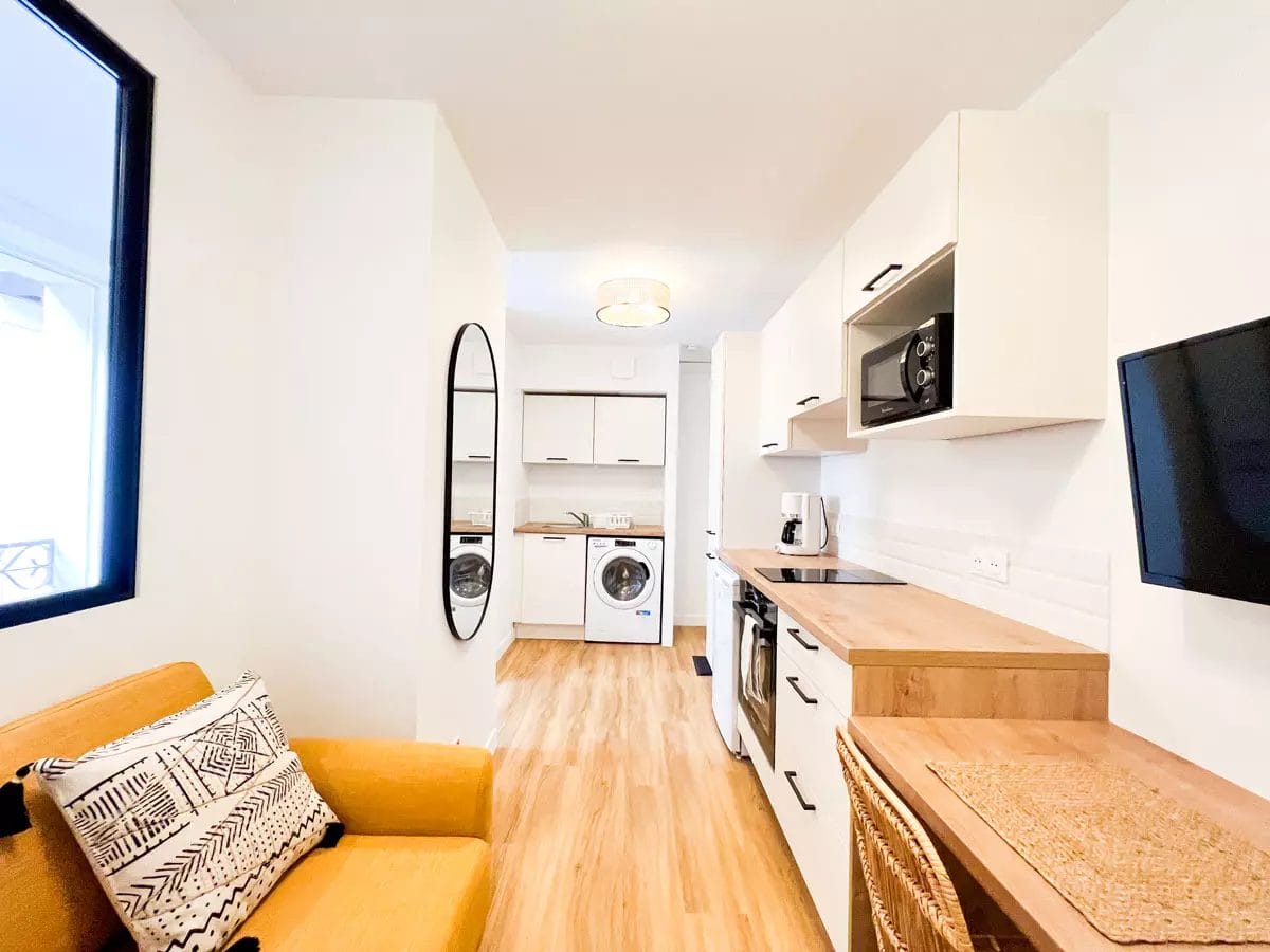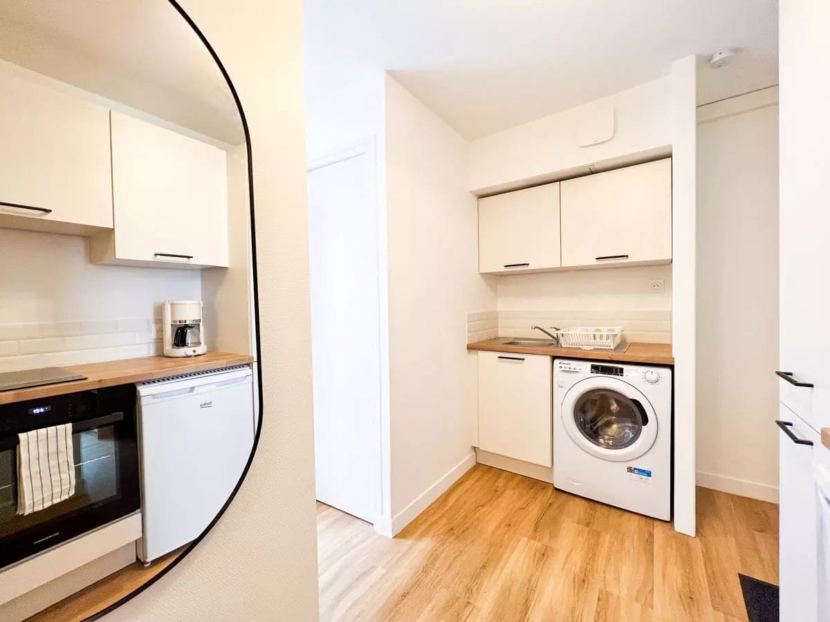L’appartement est situé dans l’hyper centre-ville de Caen, une zone sous haute tension locative. Tout est accessible à pied, que ce soit les commerces ou transports en commun. C’est un investissement de type patrimonial au vu de l’emplacement. Initialement l’appartement était un studio avant la rénovation complète du bien.